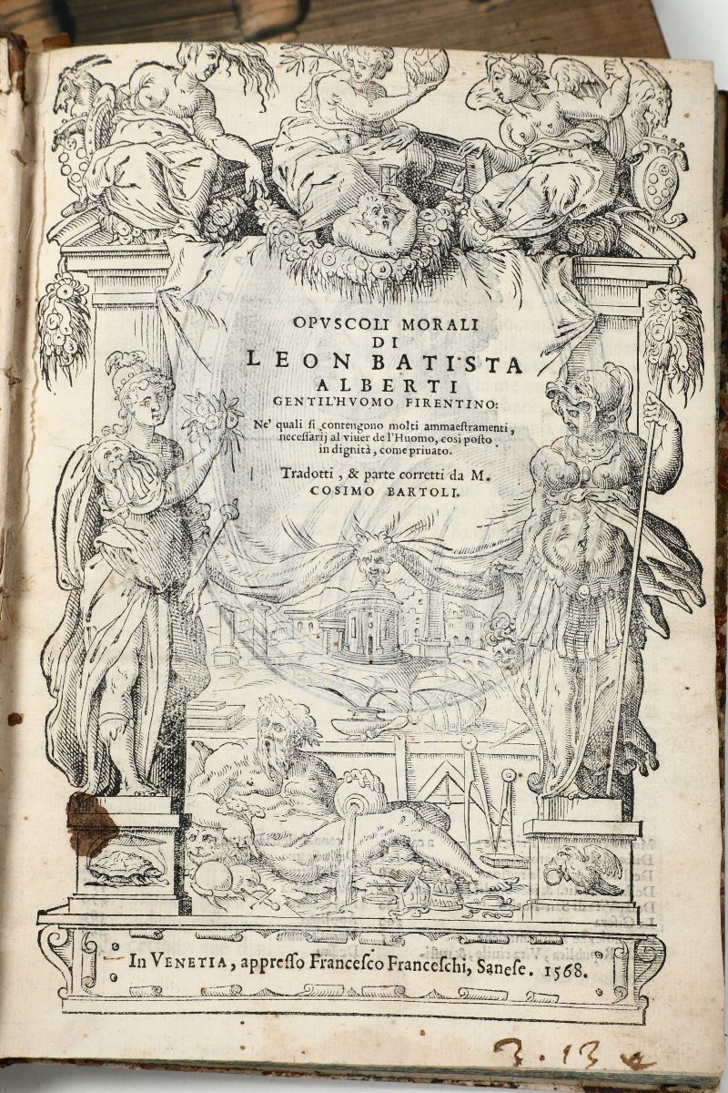 Alberti,Leon Battista Opuscoli morali..Venezia,appresso Francesco Franceschi Sanese,1568(Soltanto:Piacevolezze matematiche,Della [..]