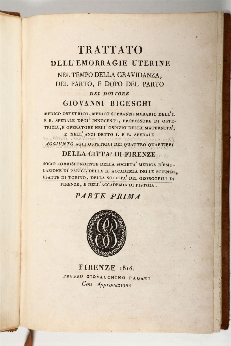 Bigeschi Giovanni Trattato delle emorragie uterine, Firenze, Ranieri 1781