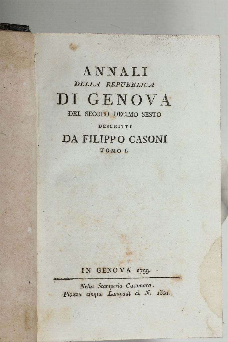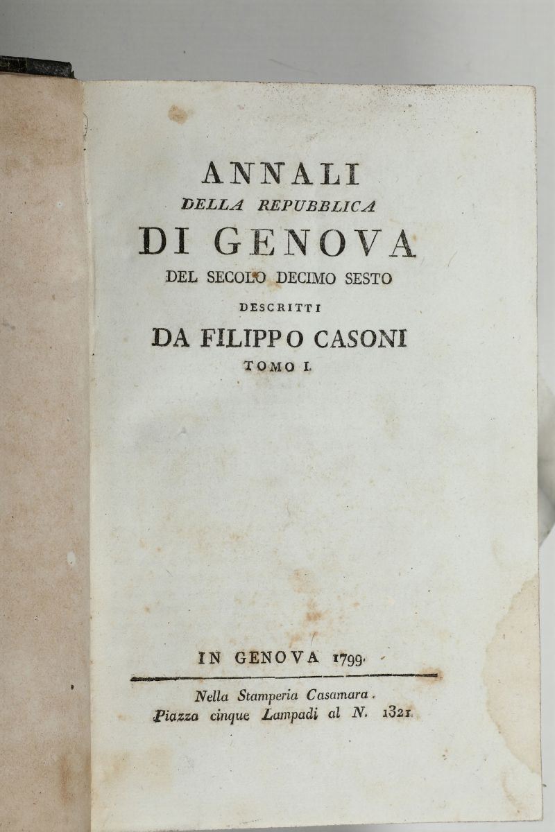 Casoni,Filippo Annali della repubblica di Genova del secolo decimo sesto..Genova,Stamperia Casamara,1799-1800