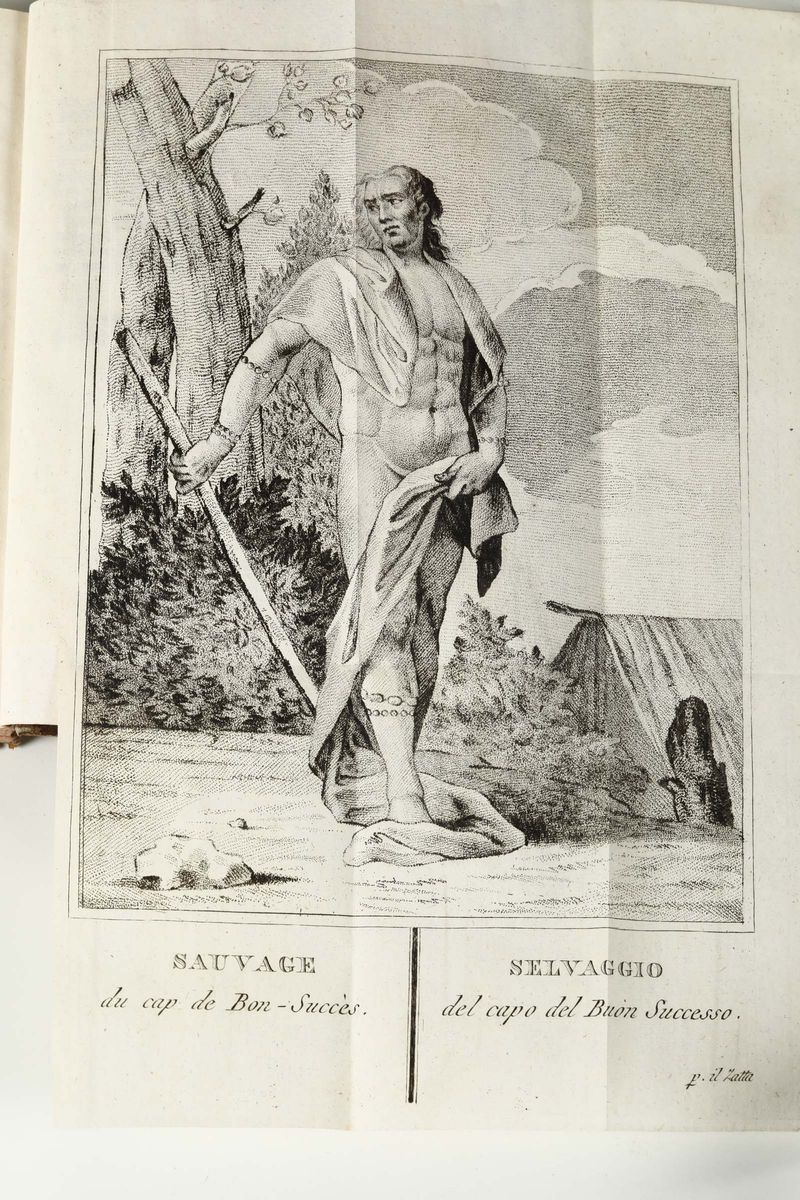 In-8°.286 pp.(1 carte geografica e 4 tavola)/284 pp.(1carta geografica+3 tavv.) /360 pp.(4 tavv.)/376 pp.(4 tavv.) Legature coeve in mezza pelle.(Abrasione e piccole mancanza).Prima edizione italiana di questa celebre relazione di viaggio nele terre australi.