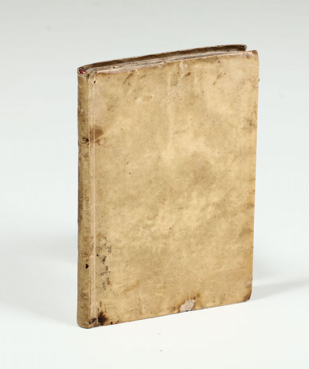 In-16°.96 pp. Legatura in pergamena coeva.Frontespizio calcografico.