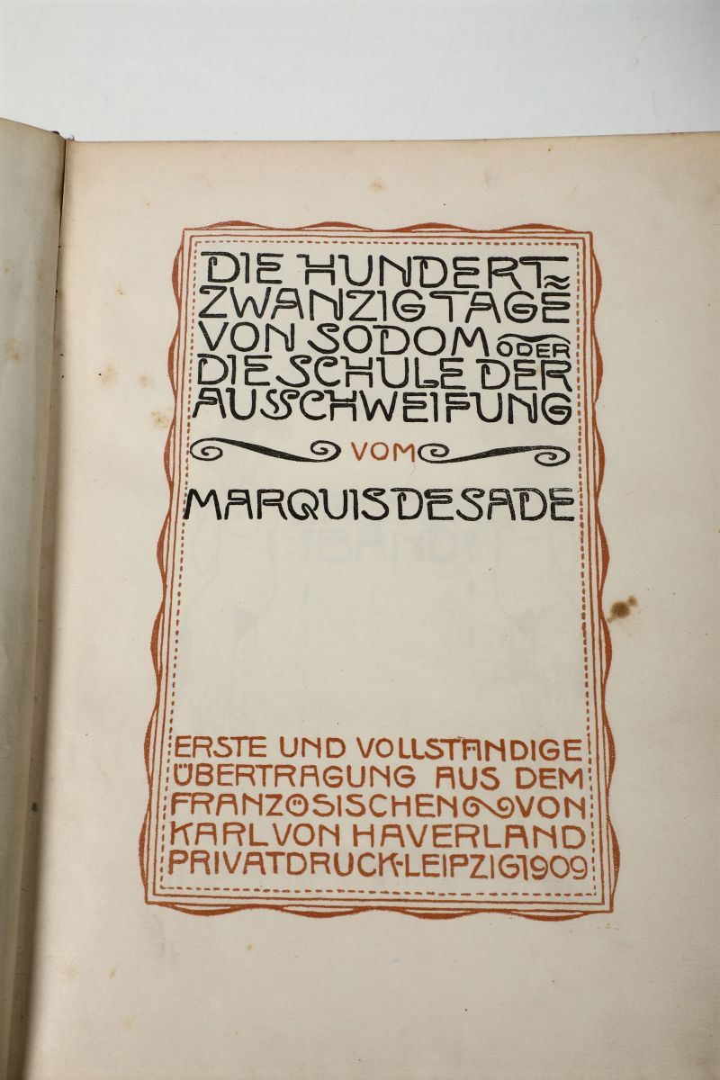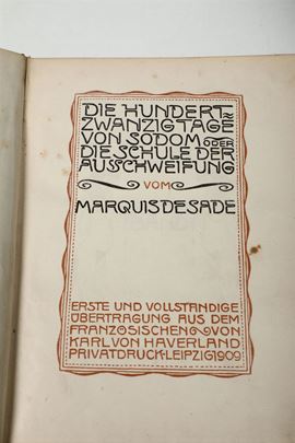 Die Hundert Zwanzigtage vom Sodom Oder Die Schule der Ausschweifung vom Marquis De Sade..Erste und vollstandige ubertragung aus dem franzosischen von Karl von Haverland privatdruck-Leipzig,1909