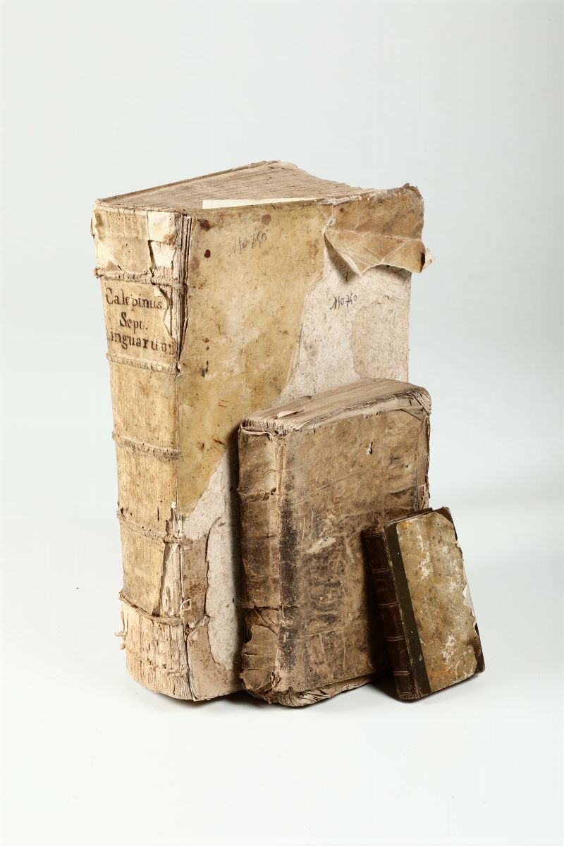Si unisce nel lotto Orazio. Opera, Lione , Griffio 1547 (bruniture e macchie). Si unisce ancora Calepino privo del frontespizio, ma presumibilmente Venezia 1708.