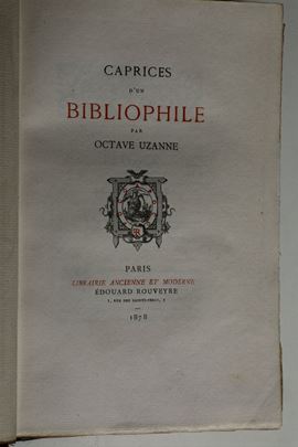 Uzanne,Octave Caprice d'un bibliophile..Paris,Librairie Edouard Rouveyre, 1878