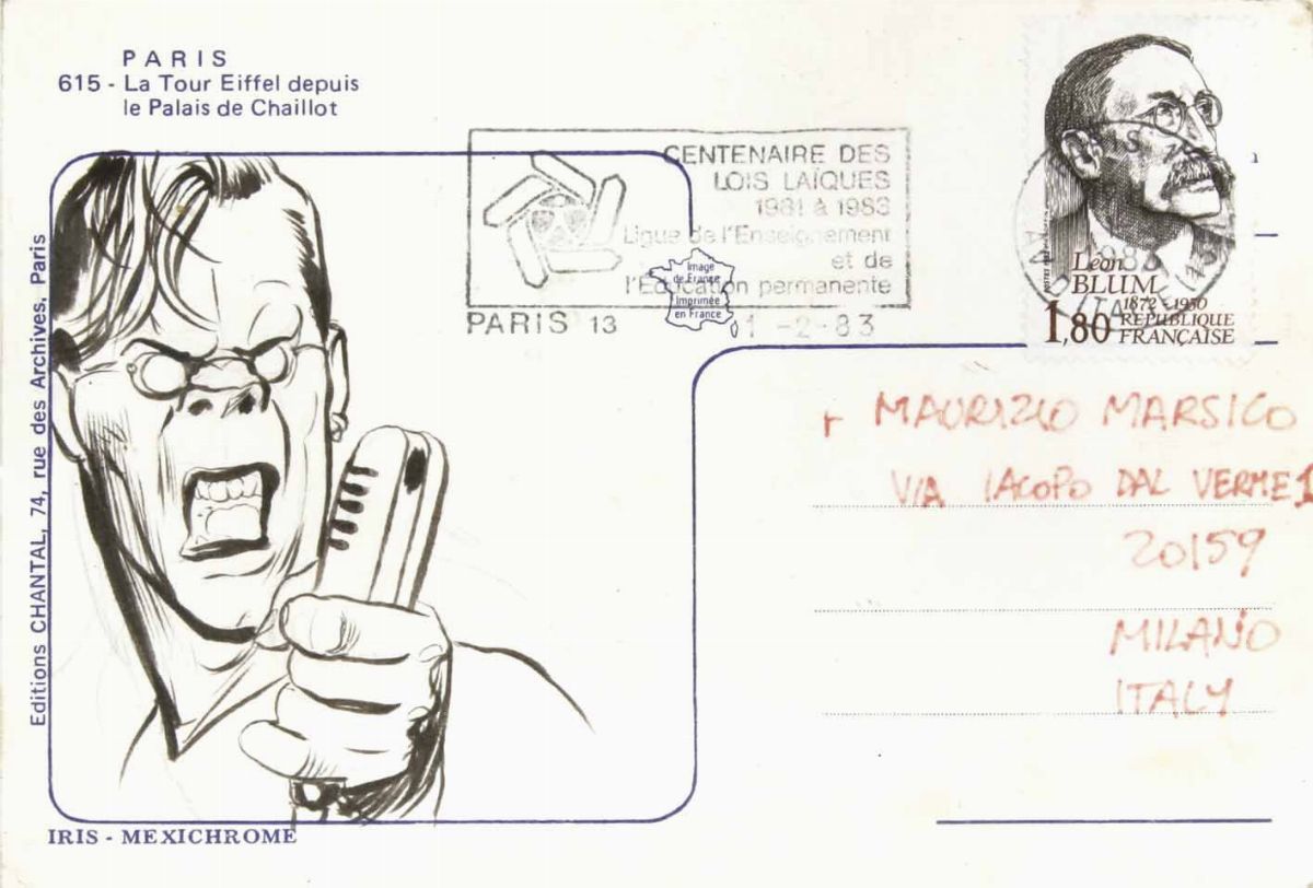 Original art pencil and ink on a post-card sent from Paris, cm 15x10,5; early 80s.