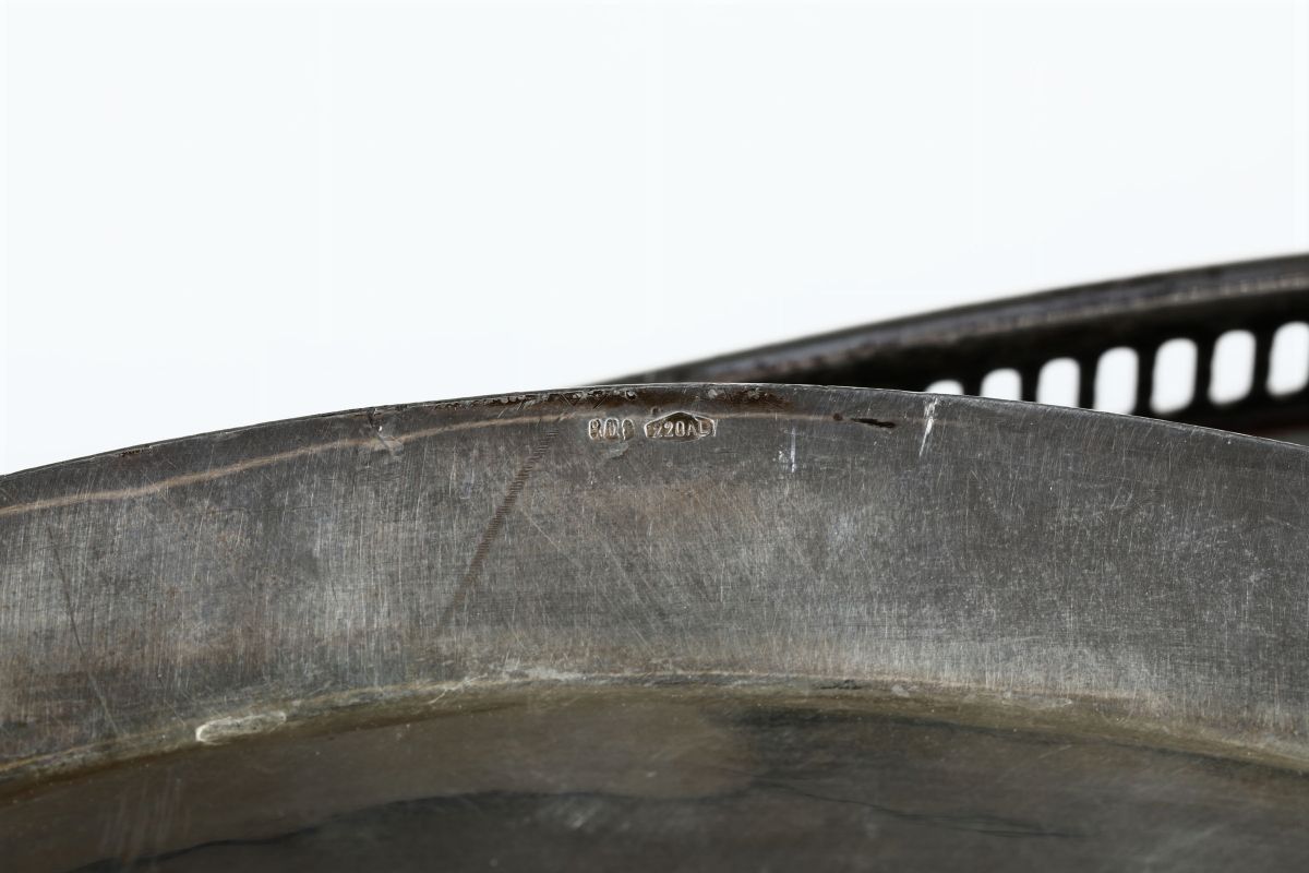 Del lotto fa parte anche un vassoio ovale con bordo sagomato e nervate, cm 55x37 gr. 185