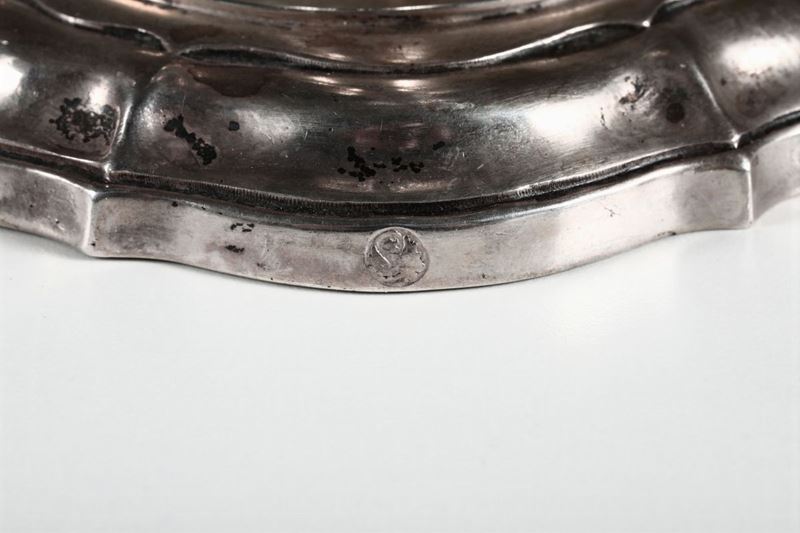 Base sagomata e corpo scanalato. Su modello dell'argenteria veneta del XVIII secolo.