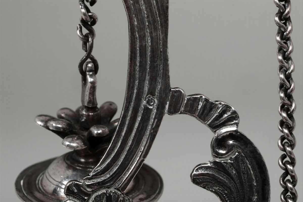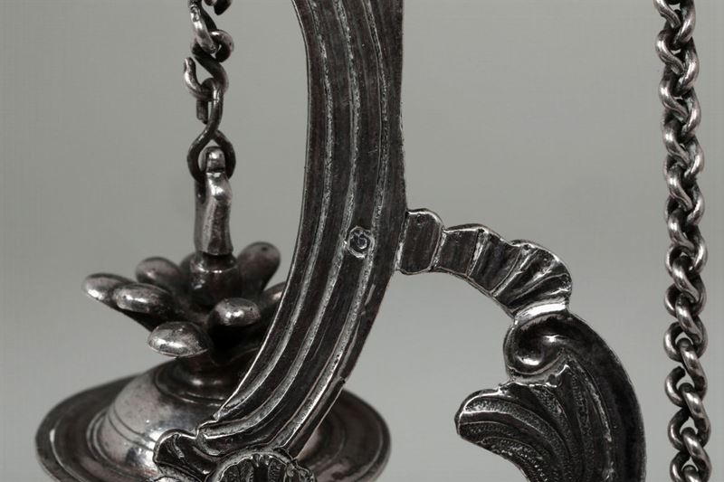 Oliera in argento fuso, sbalzato e cesellato, Genova, punzone della Torretta per l'anno 1778 e bolli di ricontrollo con delfino e croce mauriziana