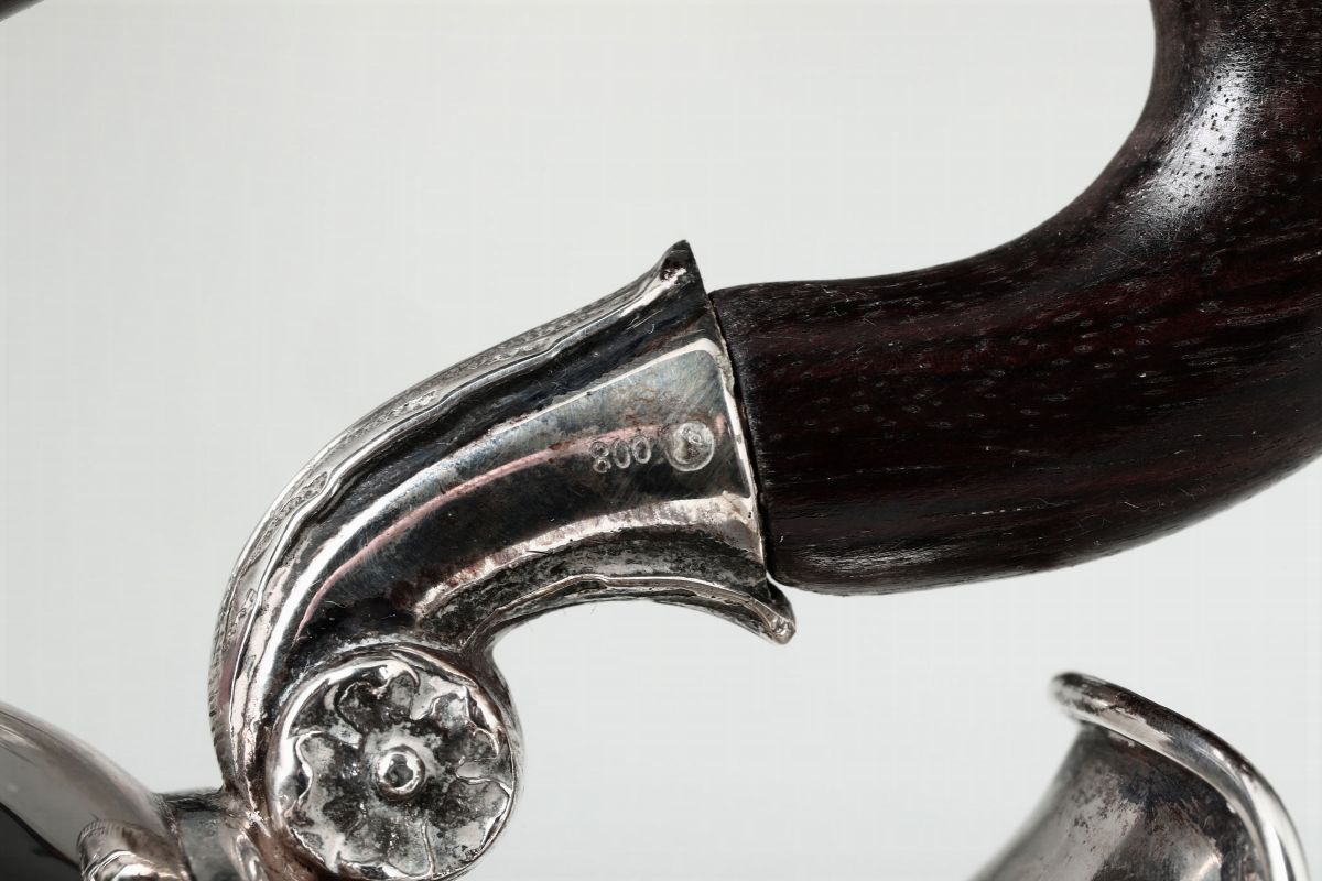 Servizio da tè e caffè in argento composto da teiera, caffettiera, zuccheriera e lattiera di gusto neoclassico, XX secolo, Italia (bolli sul manico)