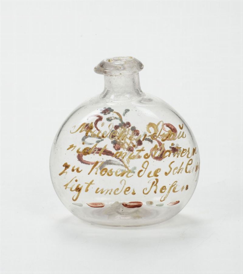 Fiaschetta in vetro dipinto, Germania XIX secolo