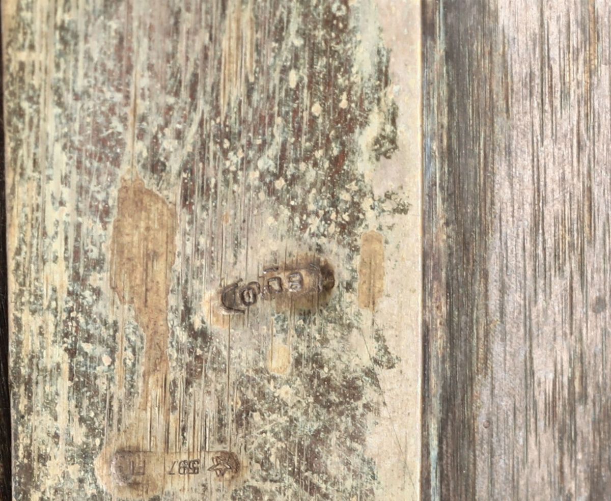 Fiasco in vetro verde con rivestimento in argento, manifattura italiana del XX secolo