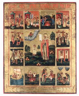 Icona raffigurante episodi della vita dei Santi martiri, Russia, XIX secolo
