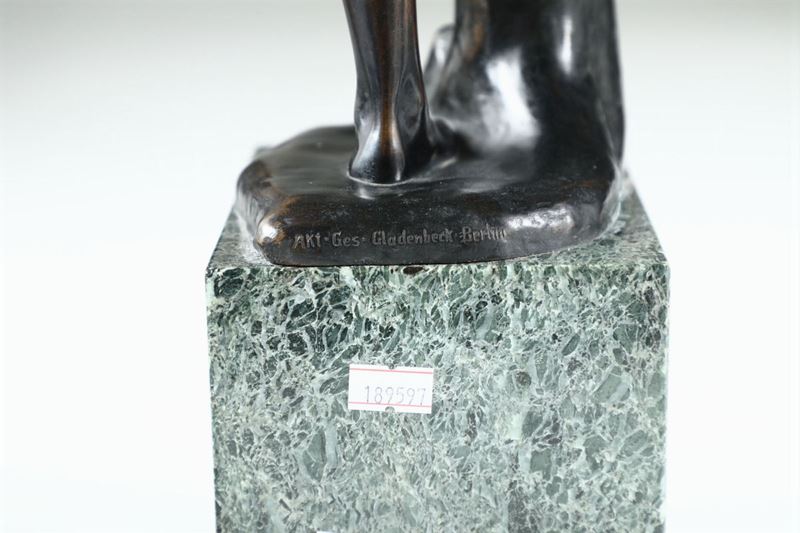 scultura in bronzo con base in marmo. Fonderie di Berlino, altezza totale cm 56, solo scultura cm 40