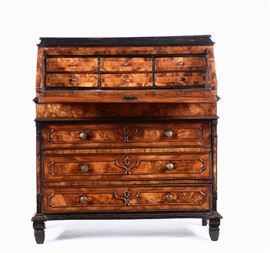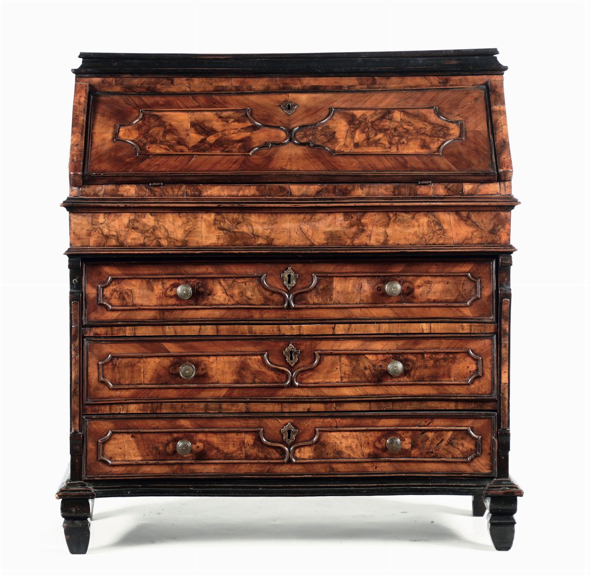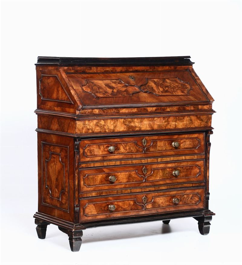 Ribalta Luigi XIV lastronata in noce e radica di noce, Milano XVIII secolo