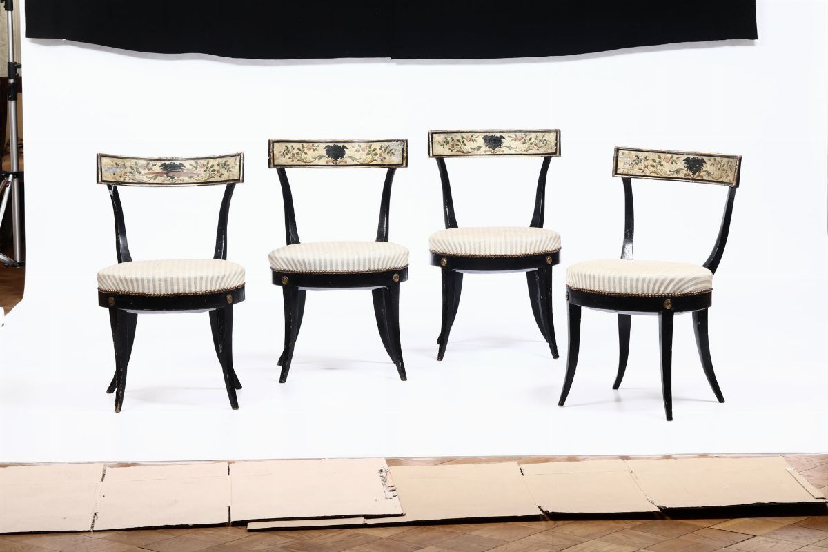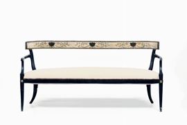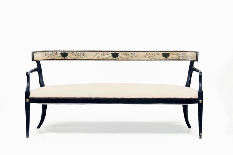 Salotto in legno dipinto ed ebanizzato di gusto neoclassico, Italia XIX secolo