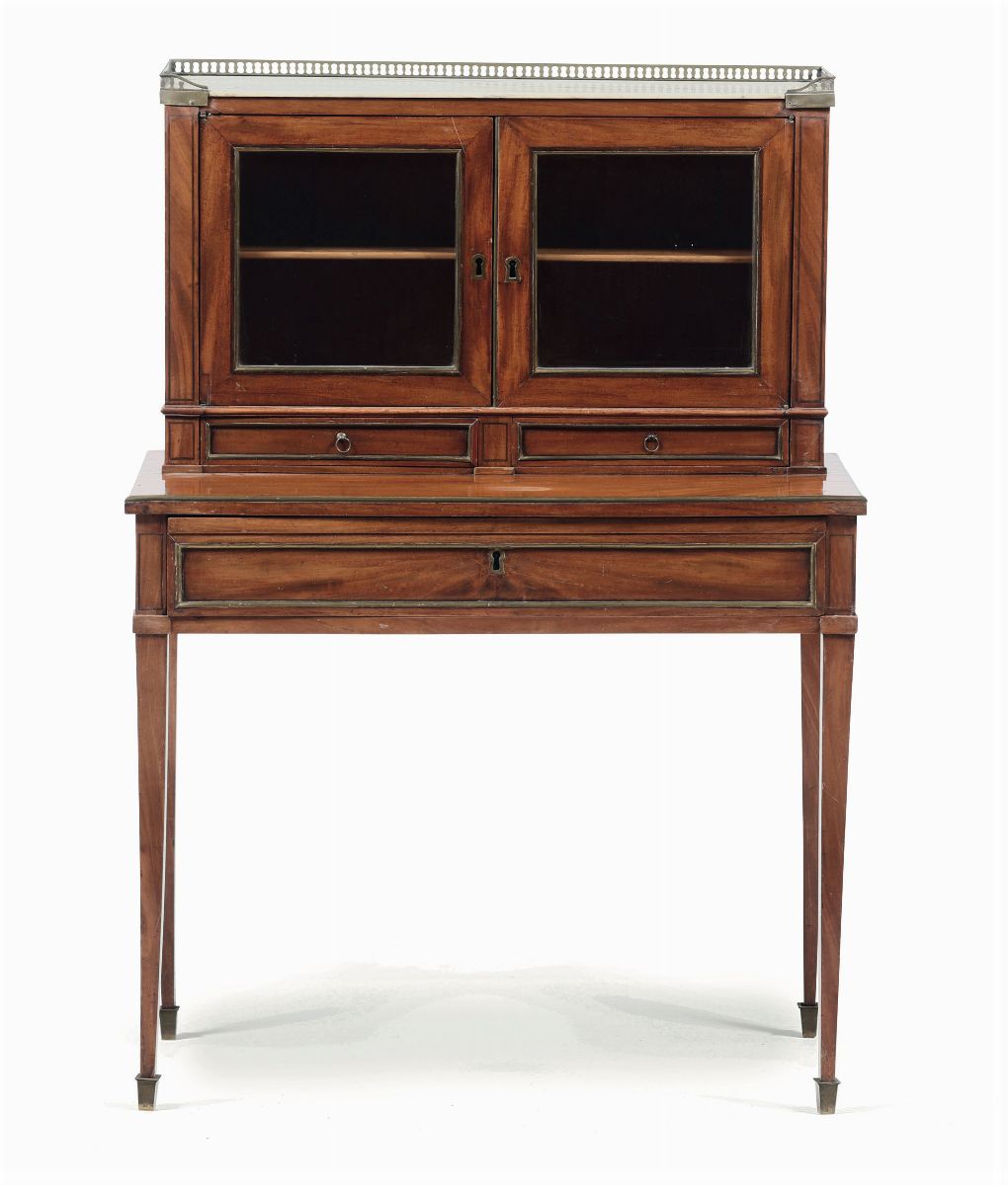 un cassetto sulla fascia, alzata a due cassettini a due ante a vetro, cm 80x42x114