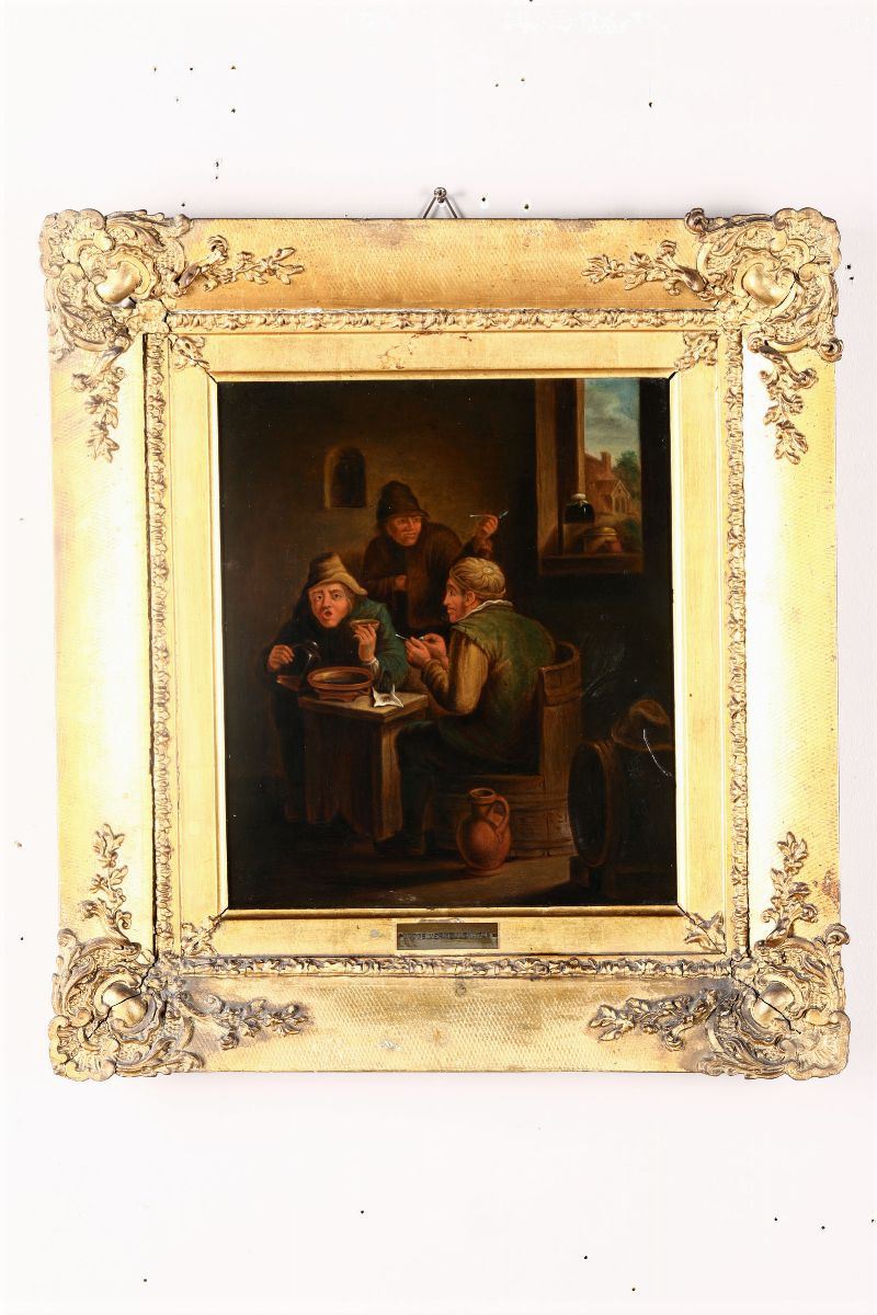 Scuola olandese del XVII secolo Scena raffigurante interno di osteria
