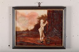 tre dipinti olio su vetro, cm 24,5x32