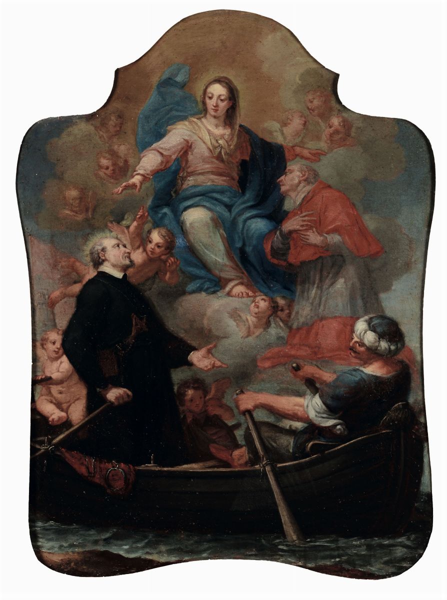 Scuola veneta del XVIII secolo Madonna con San Carlo, San Francesco Saverio e angeli