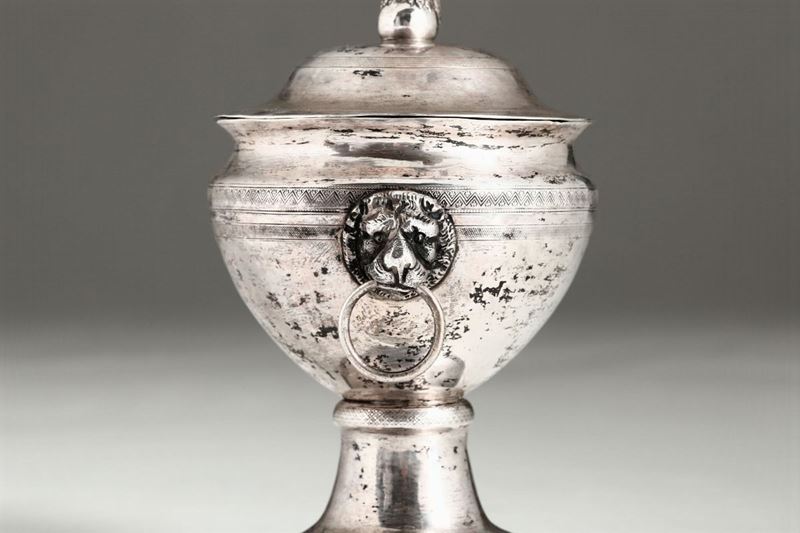 Zuccheriera in argento fuso, sbalzato e cesellato regno di Napoli inizio XIX secolo