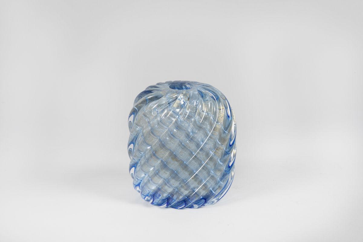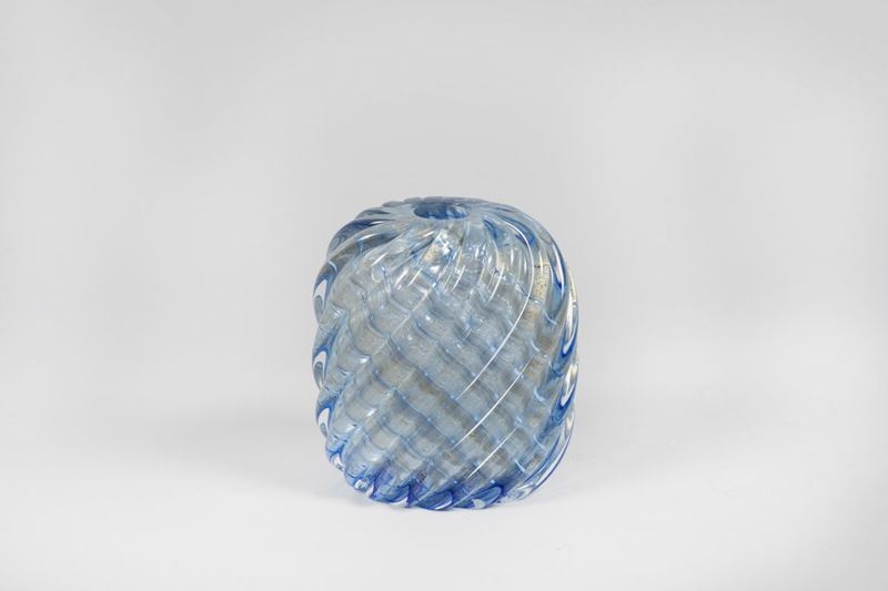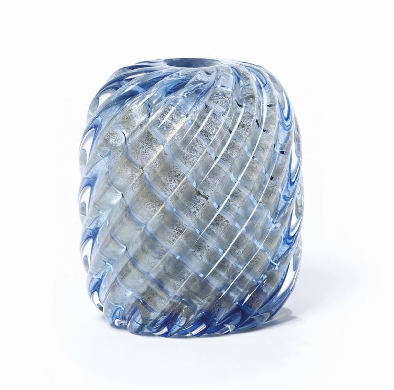 An oval vase, Diamante series, in double-twisted glass with submerged gold leaf. Acid-etched signature Venini Murano Made in Italy. H 13cm