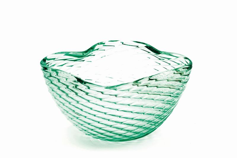A large square bowl in diamond glass. H 18.5cm, 31x29cm