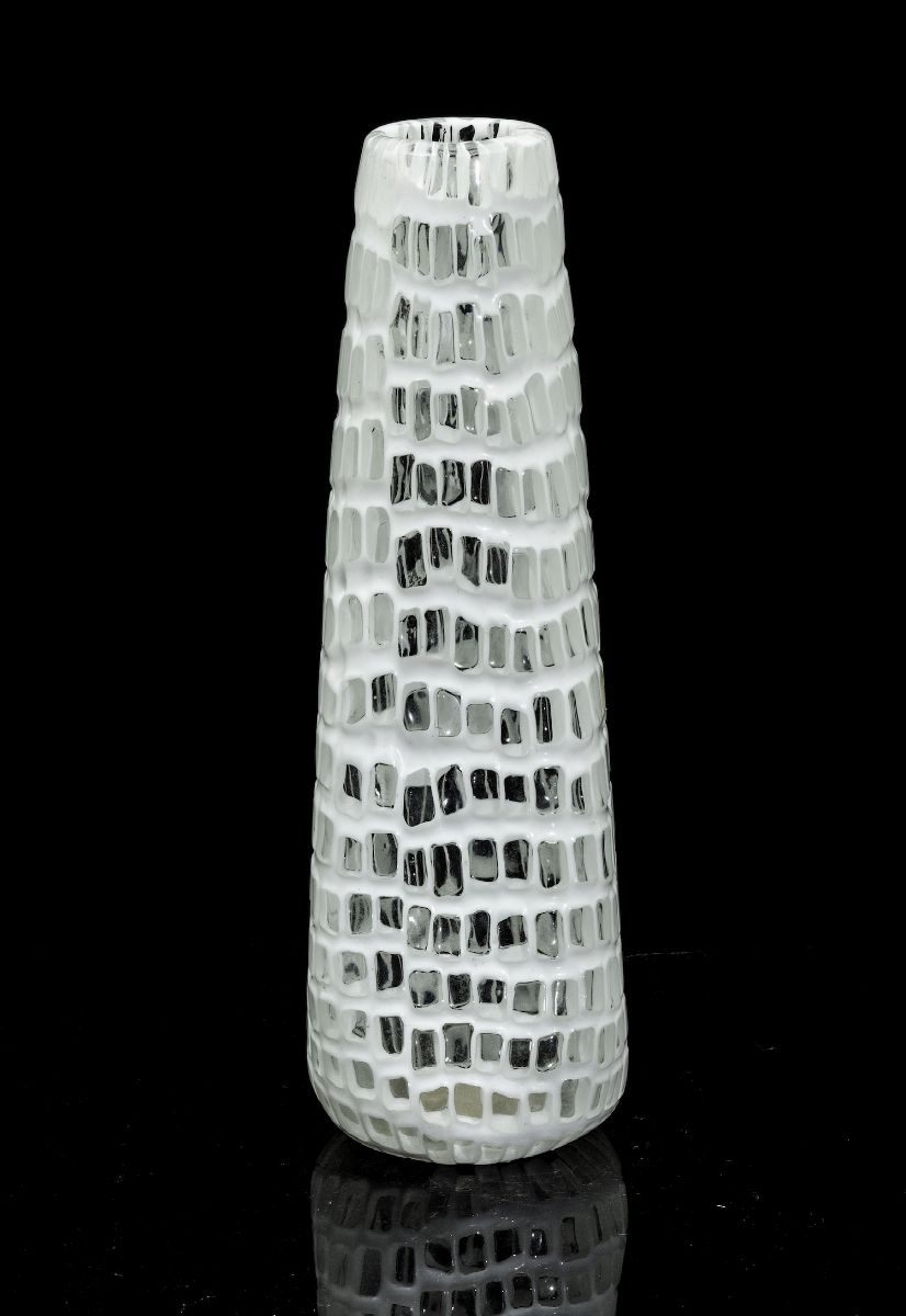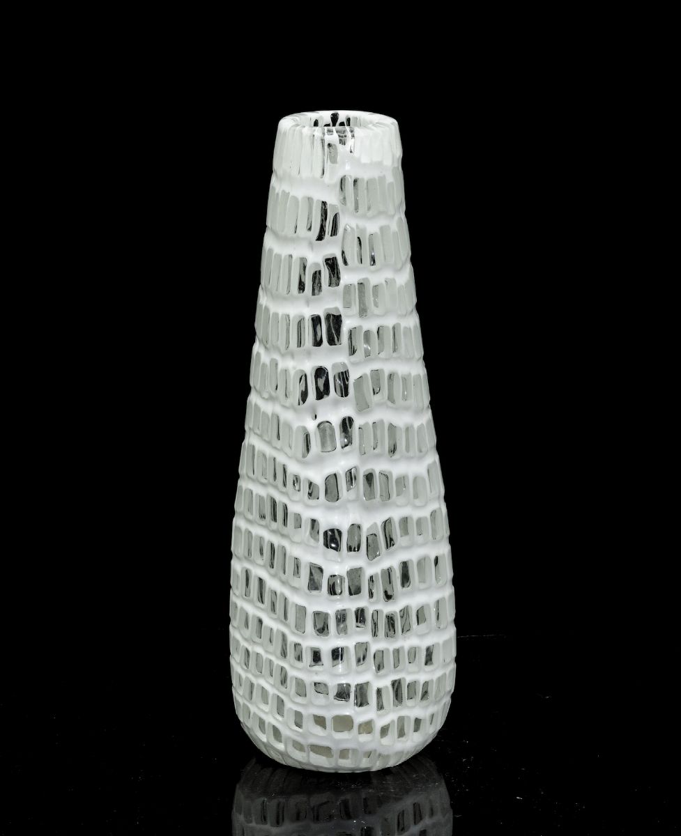 A blown glass vase from the Occhi series with a milk glass murrine decor. Signed Venini 87 H 30,5cm