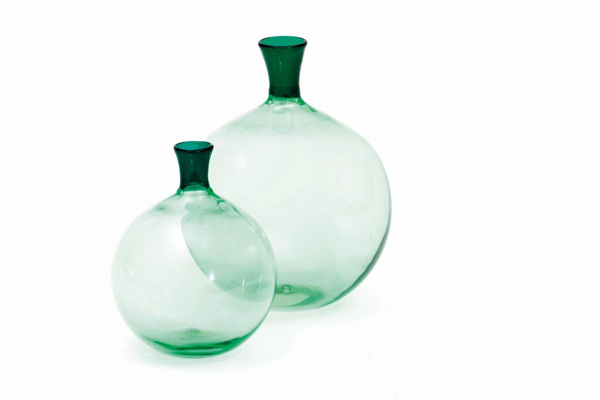 Two green blown glass vases from the Colletti series. H 17.5cm and 13cm