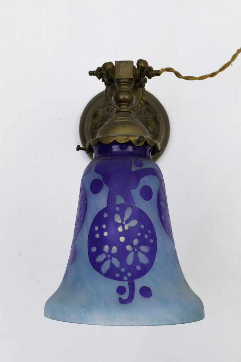 Lotto composto da un’applique in ottone dorato con diffusore in vetro a cammeo e un'altra in forma di tralcio con grappoli d’uva.
