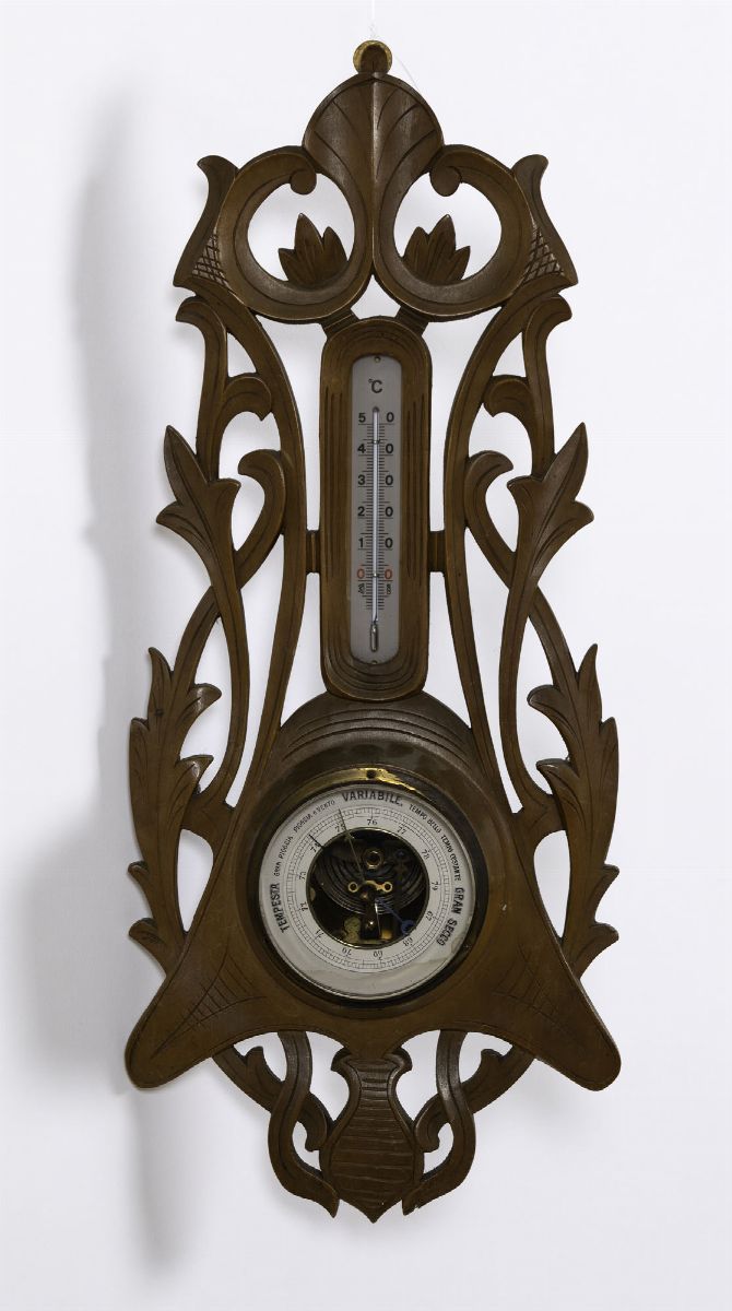 Lotto composto da lampada a luminator in radica e barometro in legno.