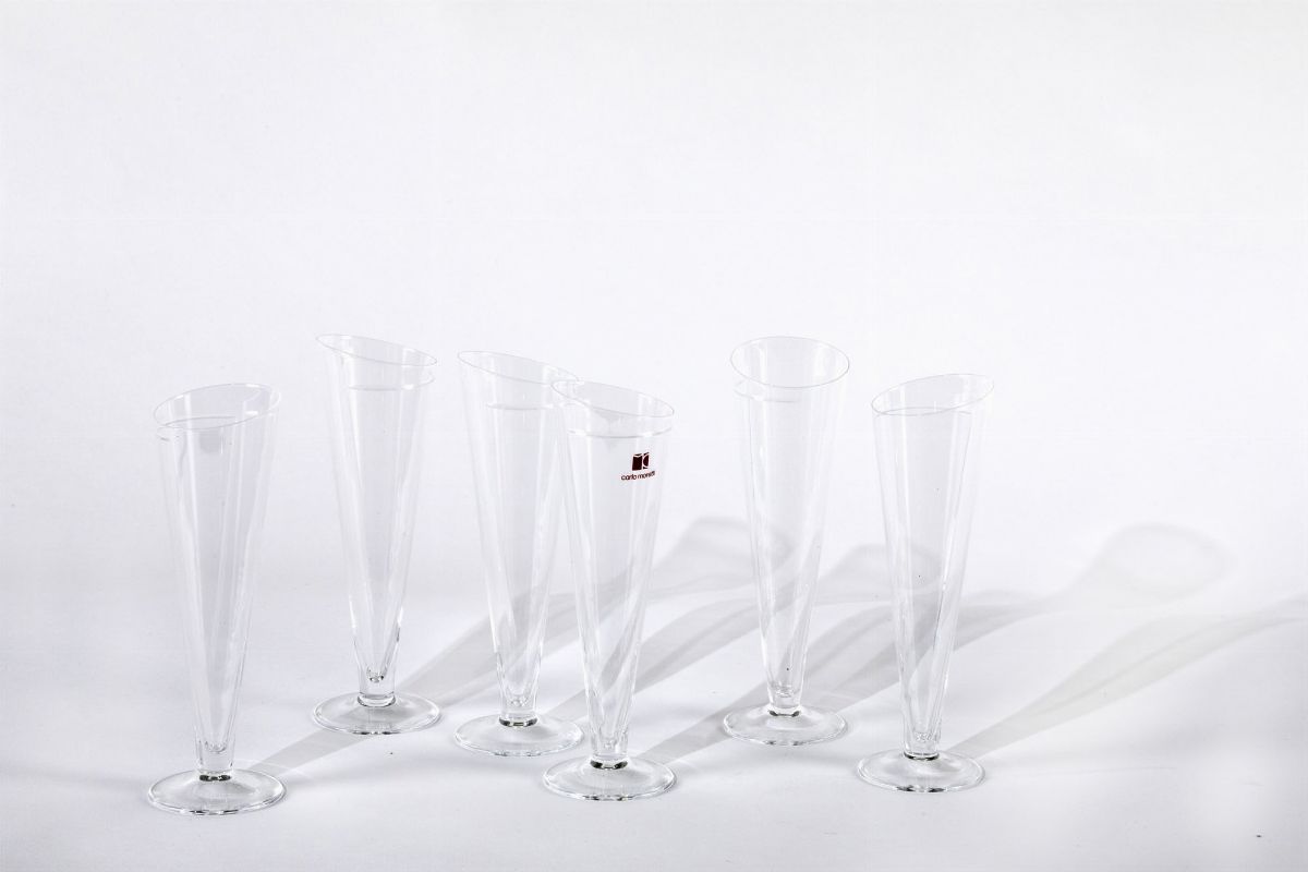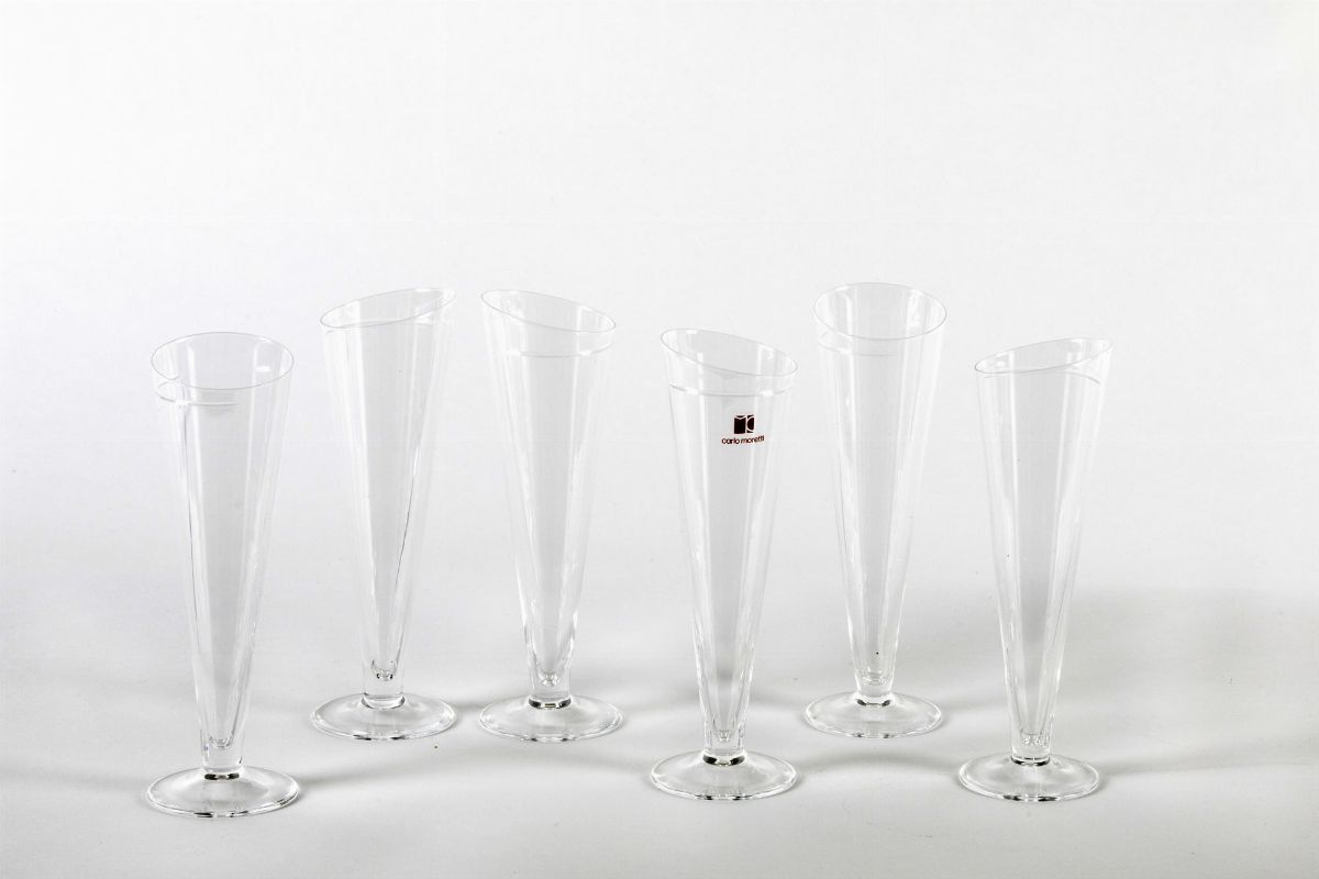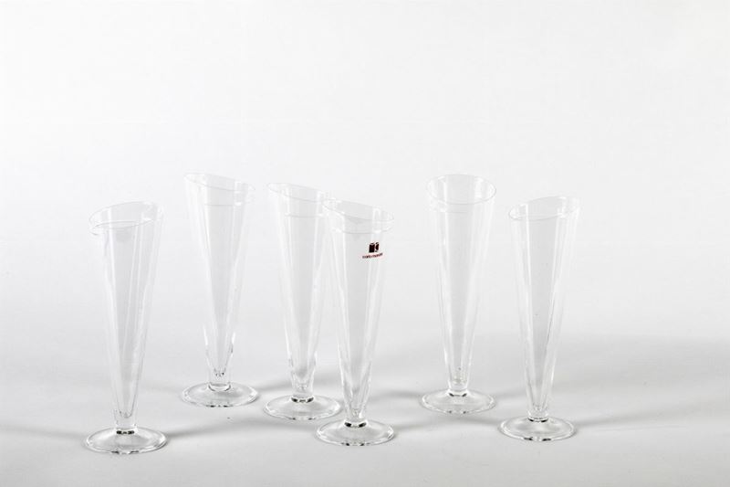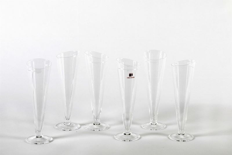 Lotto composto da sei calici in vetro trasparente con incisione.