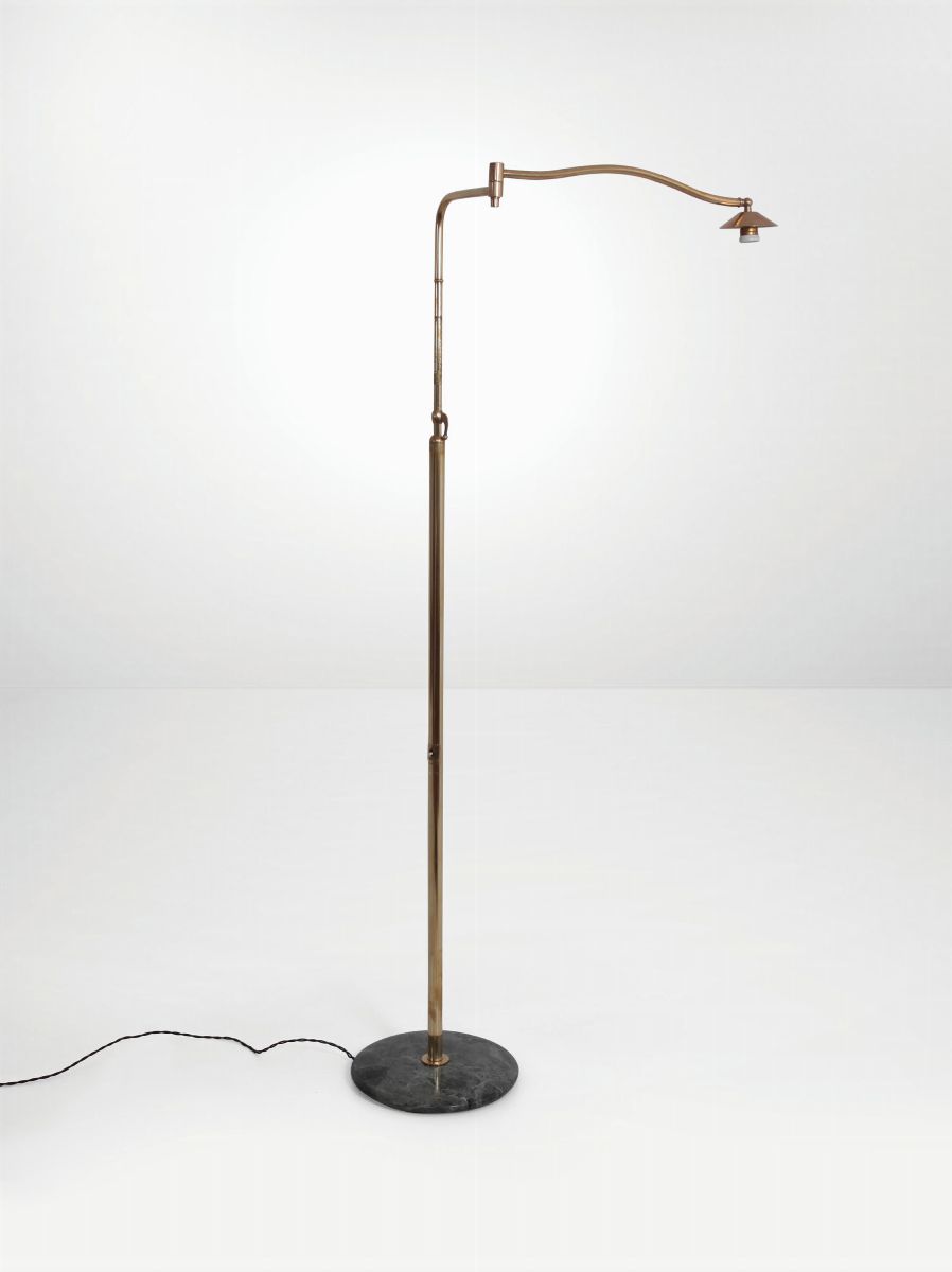 An adjustable and extendable reading lamp with a brass structure and a marble base. Italy, 1950 ca.