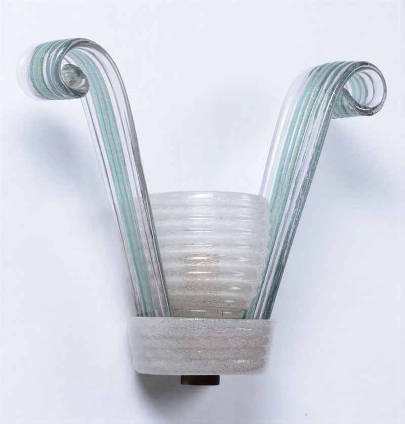 Lampada da parete con struttura in ottone ed elementi diffusori in vetro di Murano.