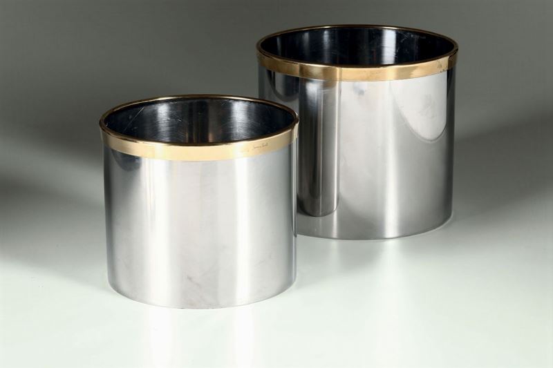 Due vasi in ottone e acciaio.