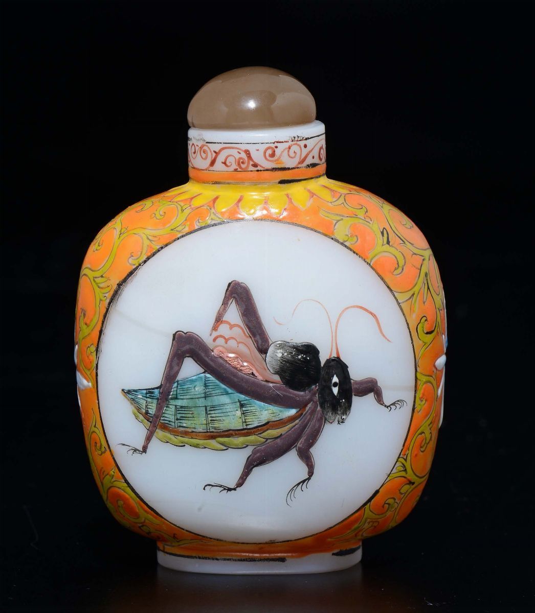 A glass paste snuff bottle with cicada, China, 20th century