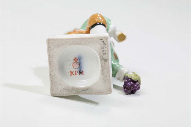 Porcellana policroma. Marca: scettro in blu e “KPM” con globo crociato in rosso mattone, sotto la base; rispettivamente scettro in blu sulla base. Altezza cm 11,5 e cm 10,7. Ottimo stato di conservazione