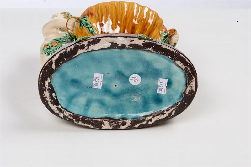 Maiolica policroma. Marca: assente. Altezza cm 22; 16 x 22. Smalto craquelé