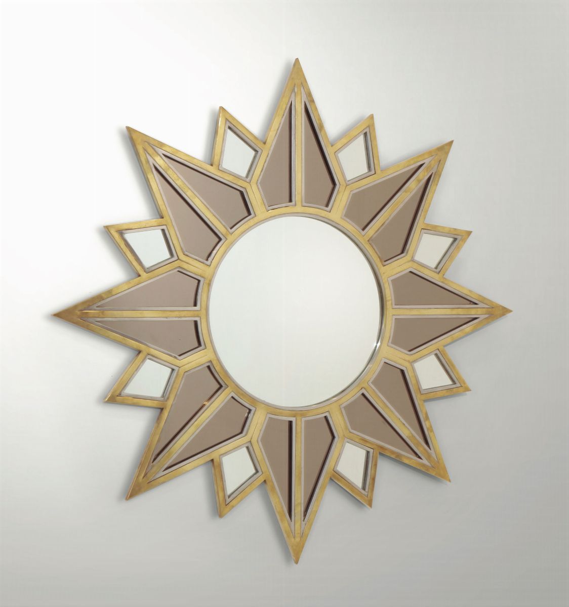Specchio con struttura in ottone e ottone nichelato.