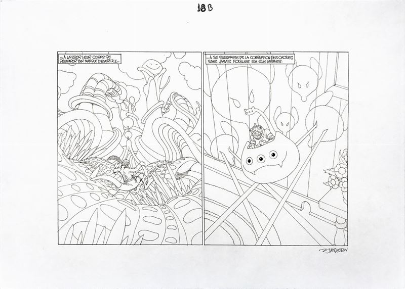 18th original page. Pencil and Indian ink on 2 cardboards, overall cm 59,5x42. Both signed. Excellent condition.