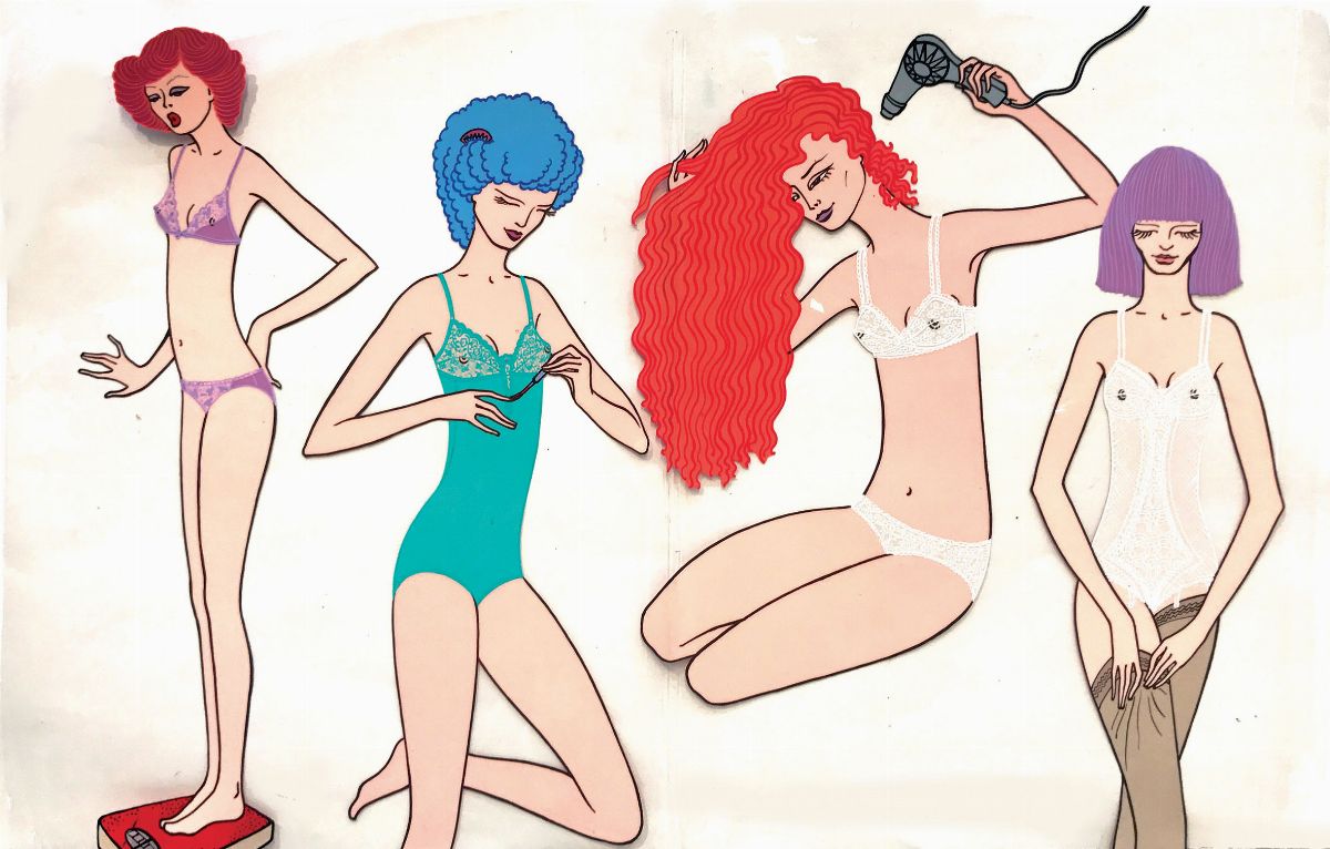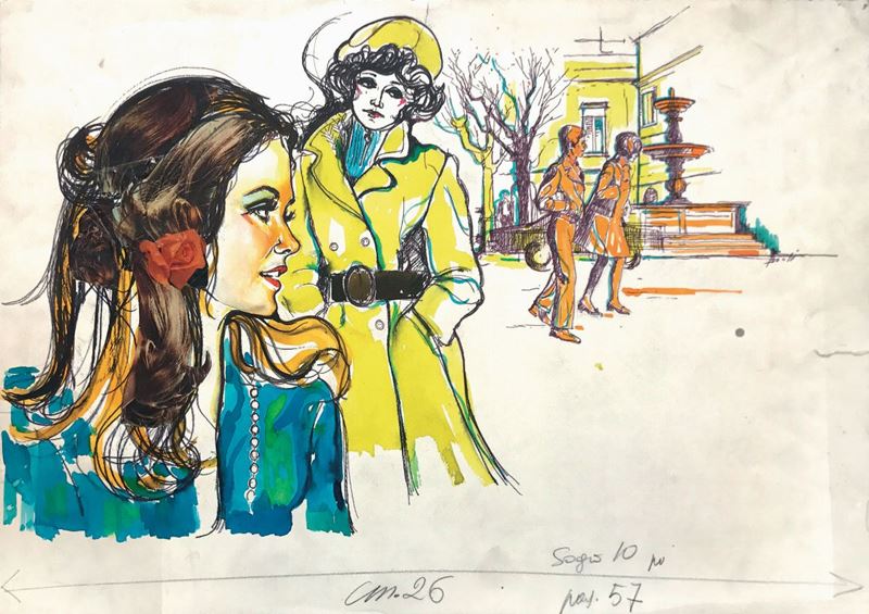 Lot of 6 fashion drawings made for novellas published in the magazines Bella and Anna Bella published by Rizzoli mid 60s