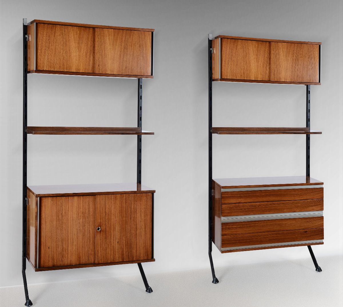 Due librerie mod. Urio con montanti in metallo laccato e struttura in legno.