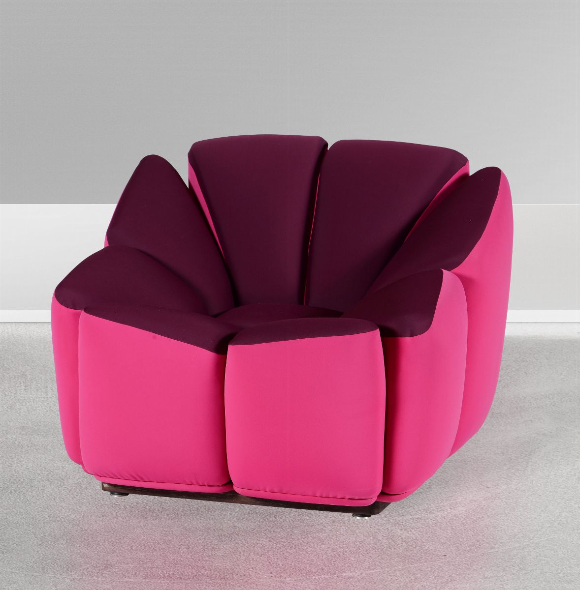Poltrona con struttura in metallo e rivestimenti in tessuto.