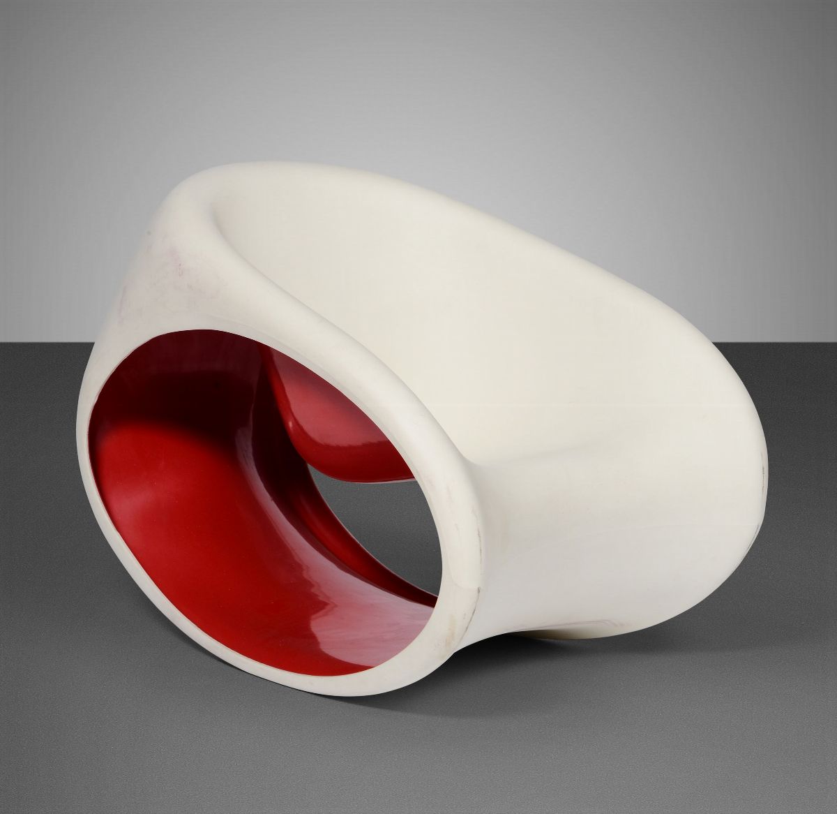 Poltrona a dondolo MT3 in polietilene stampato con doppio passaggio in plastica rotazionale.