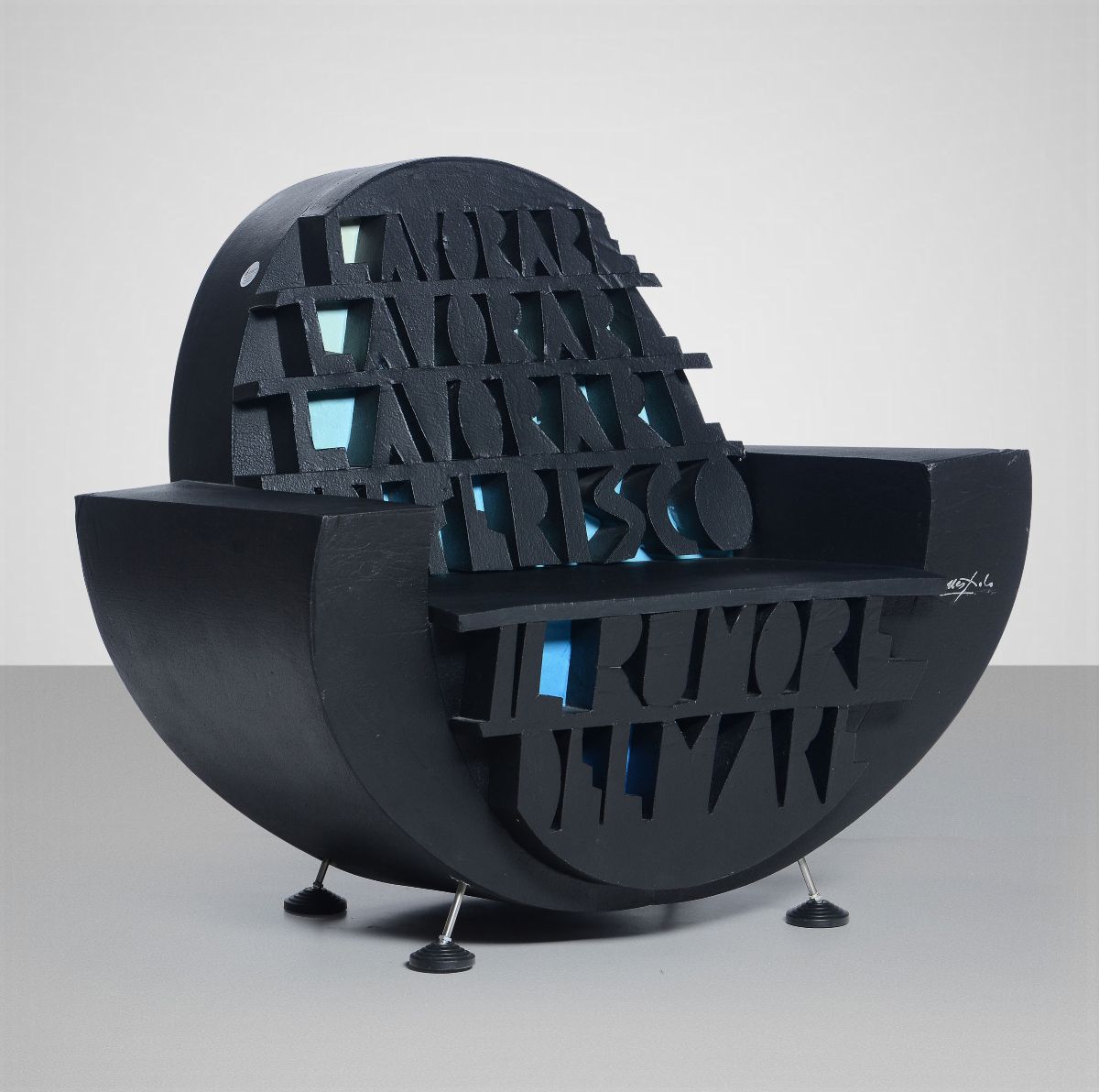 Poltrona mod. Lavorare Lavorare con struttura in acciaio e imbottitura in poliuretano lavorato a mano. Sostegni in acciaio e PVC. Edizione numerata di 100 esemplari, 50 neri e 50 bianchi. Certificato di autenticità .