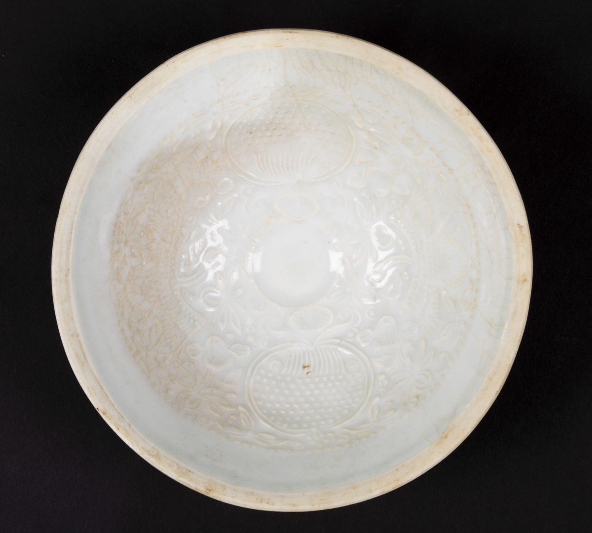 Enamelled Qingbai porcelain with an embossed naturalistic decor. 6.7x18cm