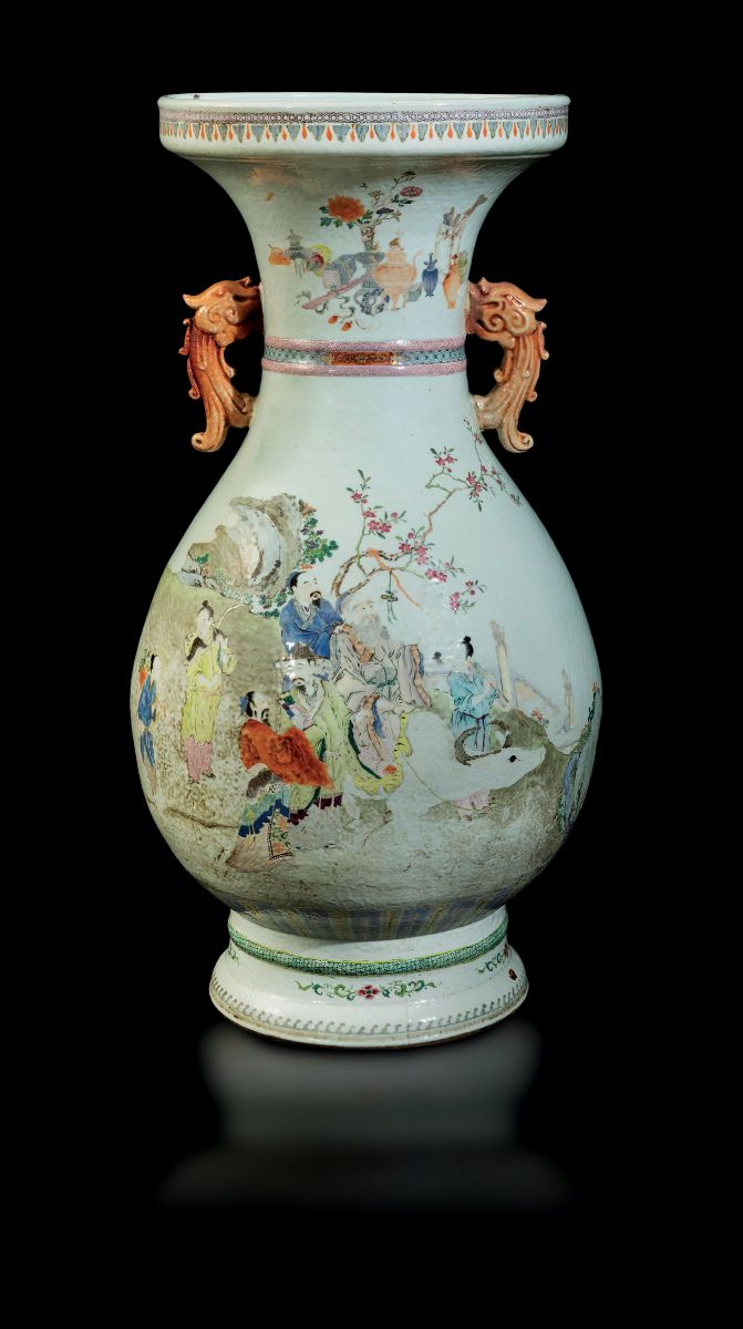 Polychrome enamelled porcelain with dragon head-shaped handles. Daoguang period (1821-1850)