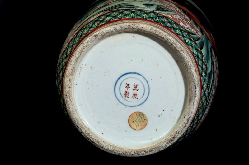 Green Family porcelain with dragons and Pho dogs. Guangxu period (1875-1908). Apocryphal Wanli mark. H 47cm