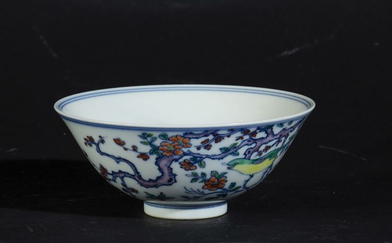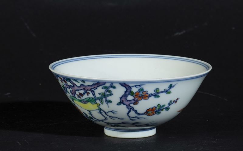 Polychrome enamels with a decor of birds and cherry blossoms. Qianlong period of the Qing Dynasty (1736-1796). 5x12cm