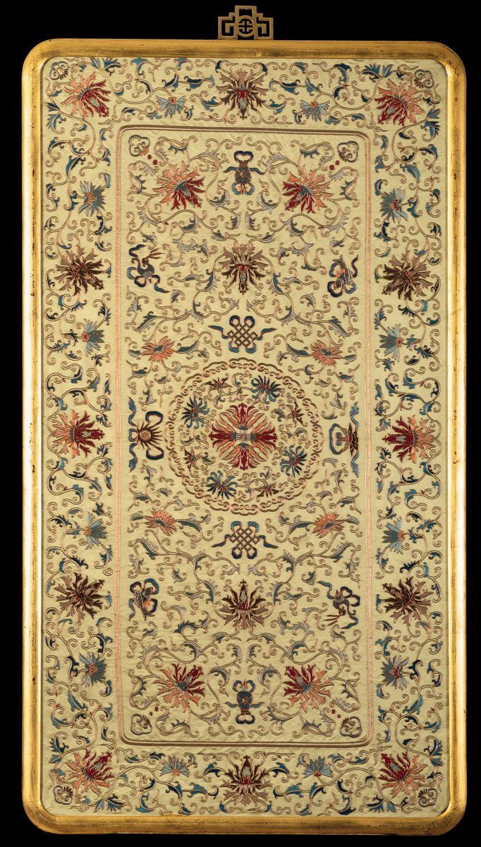 An embroidered silk piece, China, Qing Dynasty, 1800s