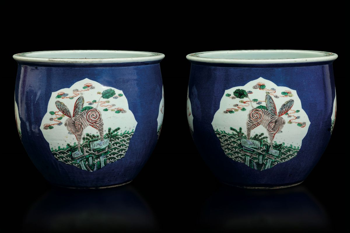 Two Green Family cachepots, China, Qing Dynasty